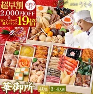 楽天市場なら、口コミで評判のおせちを早割価格で予約できるうえ、ポイント還元でさらにお得。