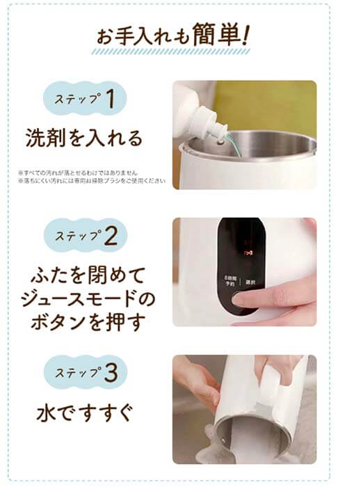 売ってる豆乳はなめらかですが手作り豆乳はサラサラした感じですね。洗う時、外側には水かけ禁だそうですが、中だけ取り外しができるわけでないのでそれは難しいわー(^_^;)と思いました。音は大きいですが、ミキサーですからね、仕方ないですよね。