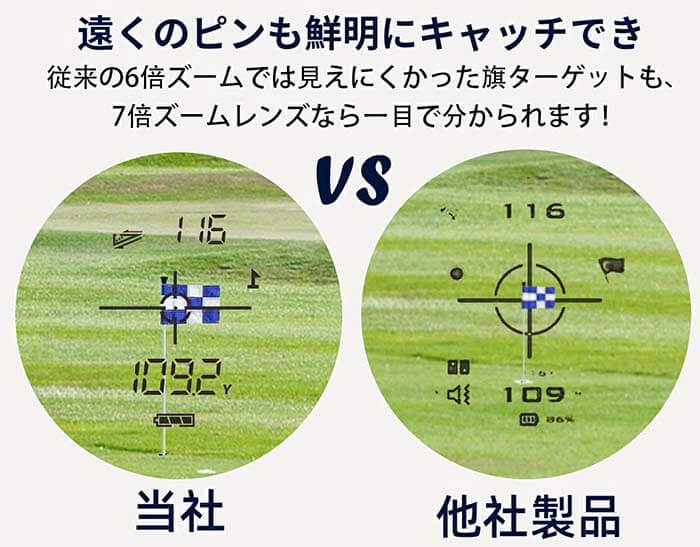 初めての飛距離測定器は何を基準に選んだらいいのか悩みましたが、こちらにしたのはコンパクトなのと、ヤード・メートルの切り替えもワンタッチで簡単というとこに惹かれました。 また、1回の充電で最大12,000回の単発測定が可能というのも魅力的でした!