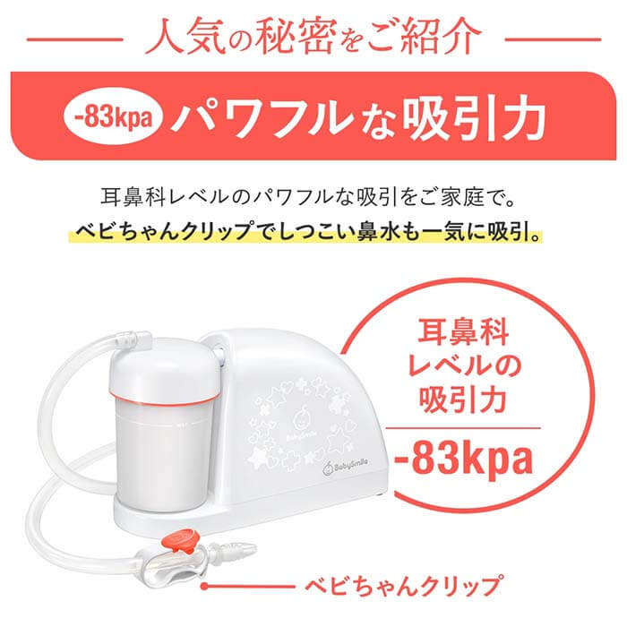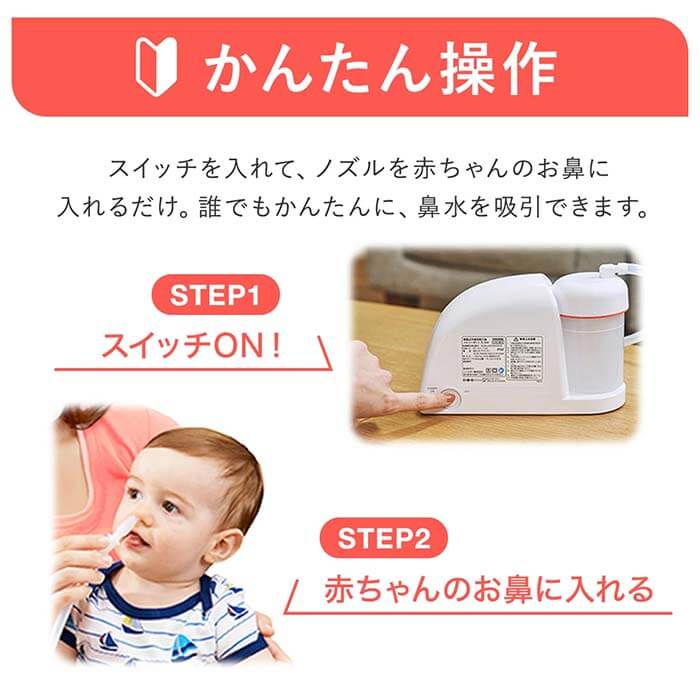 生後間もない赤ちゃんの鼻づまり対策に購入。結果、大正解でした!吸引力がしっかりあり、固まりかけた鼻水もスムーズに取れて、赤ちゃんもすぐに呼吸が楽になっている様子。夜間の寝苦しい時にも大活躍しています。