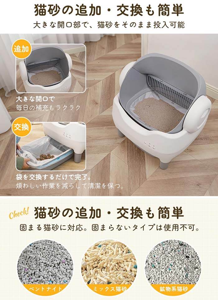多頭飼いのため掃除の負担が大きかったのですが、この自動猫砂盆を導入してから本当に楽になりました。 猫が入るときの安全センサーもしっかりしていて、安心して使えます。