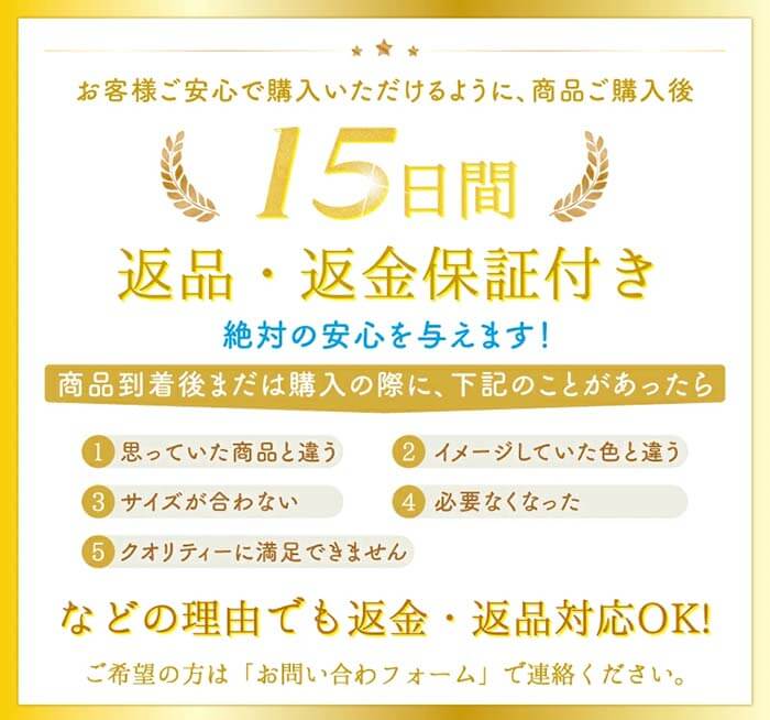 満足できなければ返品可能