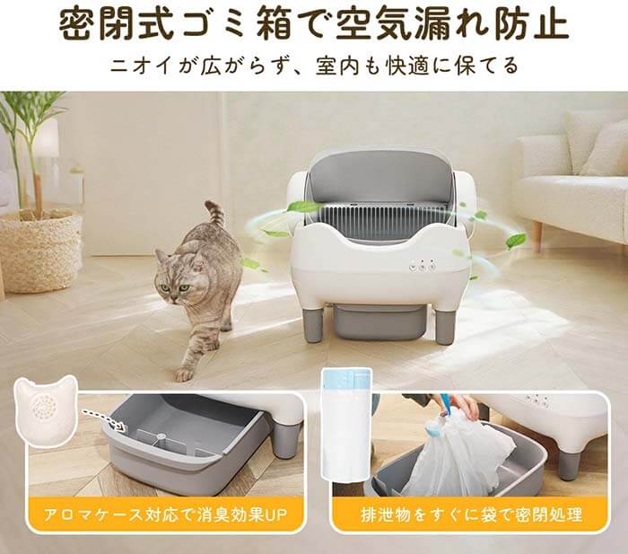 設置してすぐに、我が家の猫2匹が興味津々で順番に使用を開始。初めて見るトイレにも関わらず、全く抵抗なくスムーズに利用してくれて安心しました。 自動で排泄物を処理してくれる機能が非常にありがたく、毎日の掃除の手間が格段に減少しました。トイレ周りも常に清潔に保たれていて、とても快適です。
