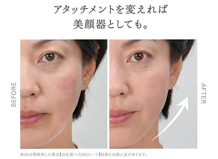 一番嬉しかったのは使用2回で顎痩せができたことと、肌がつやつやになったことです。 一通りモードを一気に試したのでどれが効いたか不明ですが続けたいと思います。 髪が絡むという口コミを見ていましたが、私はストレートのロングですが絡みませんでした。 アタッチメントが頭用でなかったり、垂直に当ててなかったり、ぐるぐる回しながら使うと絡みそうです。
